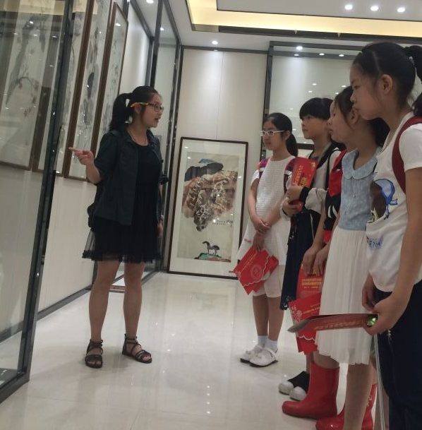 當(dāng)天過來的藏家也是絡(luò)繹不絕,現(xiàn)場(chǎng)工作人員就藏家感興趣的作品進(jìn)行專業(yè)細(xì)心地講解,一位漂亮的老師帶著一群孩子前來觀展,現(xiàn)場(chǎng)教授他們?nèi)绾涡蕾p中國(guó)畫,吸引了前來觀展的群眾。我們通過展覽的形式,讓名家作品真實(shí)地走入老百姓的視野,百姓可以與名家字畫近距離接觸,與藝術(shù)家面對(duì)面交流,更重要的是我們讓老百姓可以把喜歡的作品帶回家。