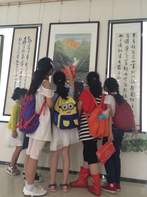 △小朋友們正在欣賞董繼寧院長(zhǎng)山水畫作