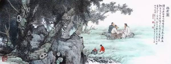 此次參拍作品還有臺(tái)灣水墨畫大師胡念祖的《品茗圖》,扎實(shí)的筆墨功夫、大膽的用色,讓畫面妙趣橫生。胡念祖的繪畫之路是探索求新之路,他的創(chuàng)造成果不僅拓展了水墨藝術(shù)的表現(xiàn)語(yǔ)言,而且給我們以有力的啟示。