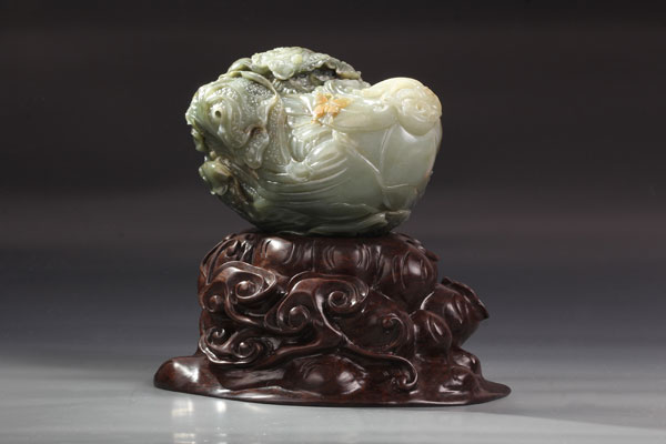 此外,還有重達(dá)7.6斤的和田玉籽料玉白菜雕件參拍。此玉由原蘇州工藝大師手工雕琢而成,所雕白菜和昆蟲栩栩如生,寓意白白發(fā)財(cái)、福到眼前,如此吉祥的寓意自然受到藏家們的追捧。