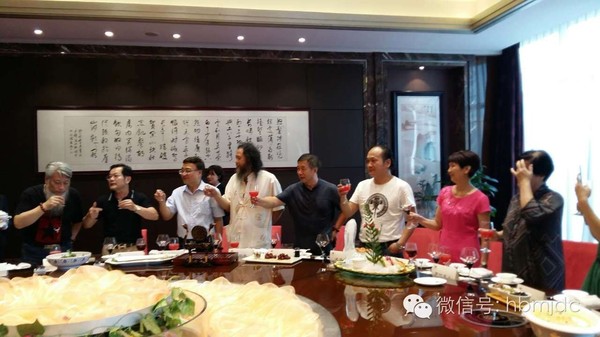 林漢強(qiáng)總裁與武漢畫家嚴(yán)雙壽、書法家秦元昌等在晚宴前合影