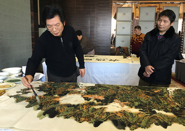▲ 2月12日省中國畫研究院院長孔奇現(xiàn)場創(chuàng)作