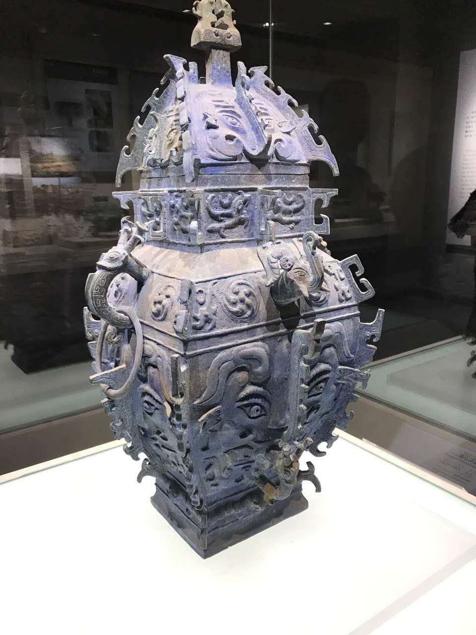 ▲ 隨州博物館工作人員正在對(duì)館藏文物進(jìn)行講解