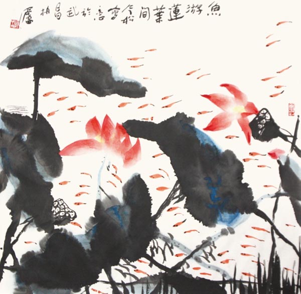 馮今松  魚(yú)游蓮葉間 68x68cm