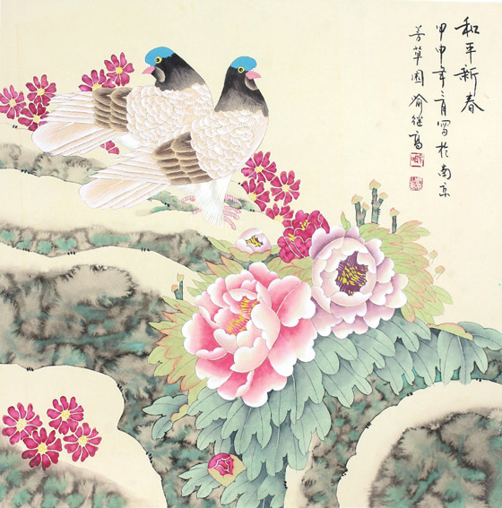 喻繼高   工筆花鳥   和平新春   68x68cm